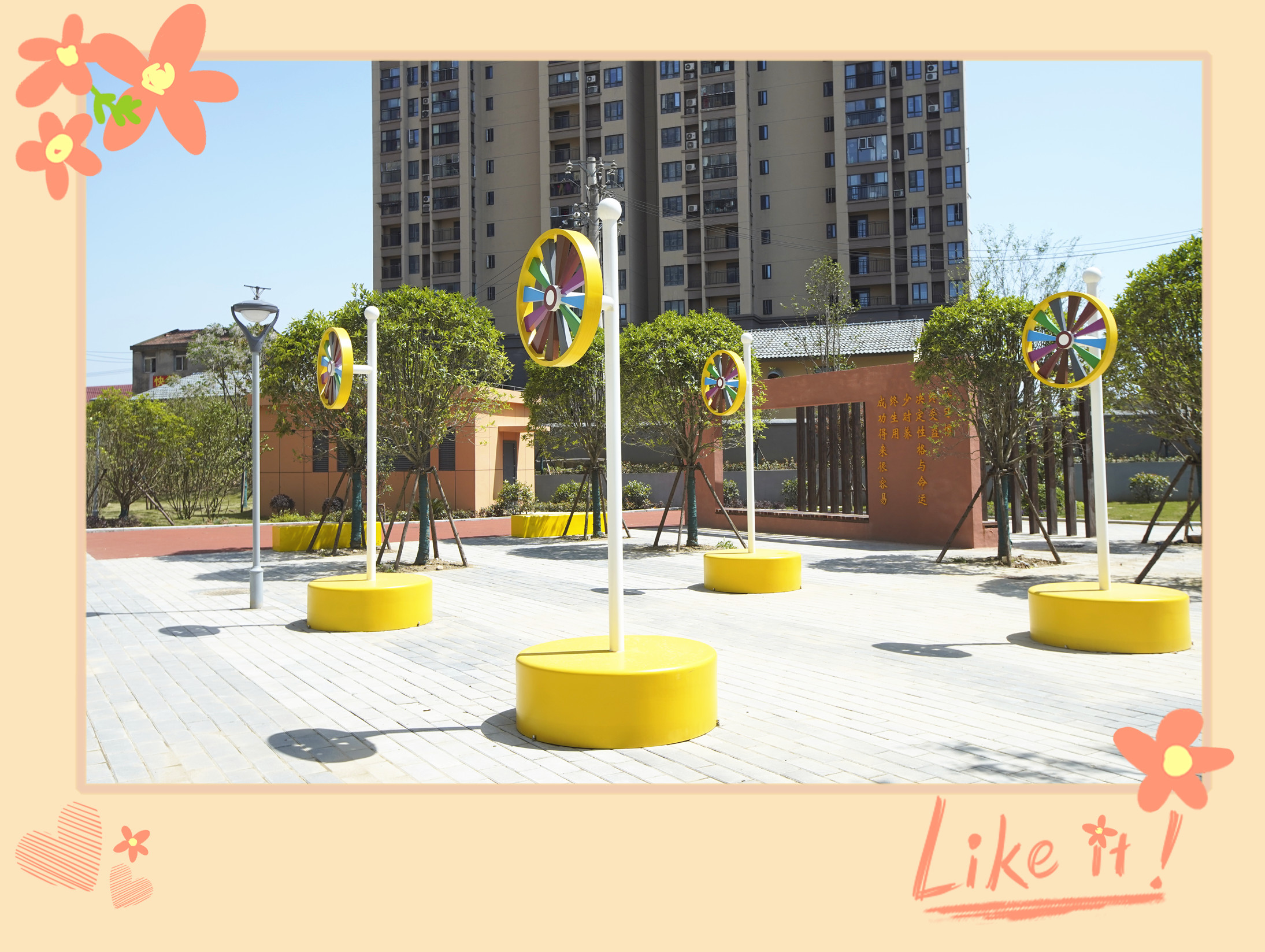 “大風(fēng)車呀吱呀吱悠悠地轉(zhuǎn),這里的風(fēng)景呀真好看,天好看,地好看,還有一群快樂的小伙伴!”下課鈴聲響起,我在這里等你!
